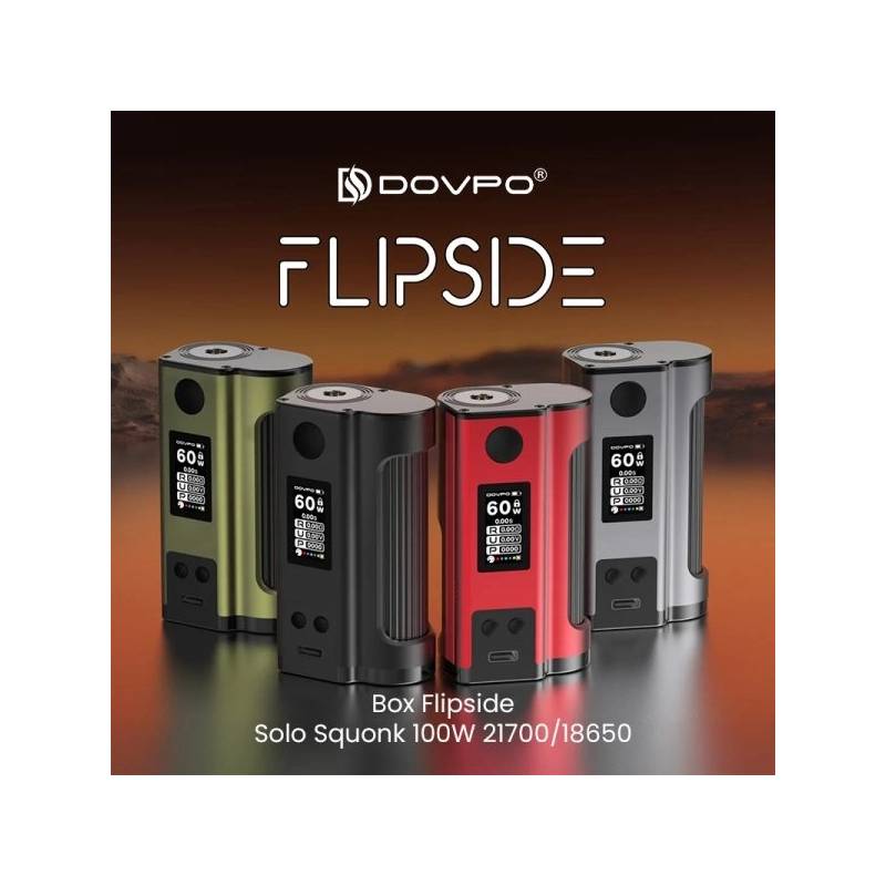 La Box Flipside Squonk Solo 100W de DOVPO est une box électronique destinée à une utilisation en bottom feeder, avec un atomiseur dripper équipé d’un pin BF. Elle fonctionne avec un accu 21700 ou 18650 (adaptateur inclus, accu non fourni) et intègre un flacon squonk de 10 ml.
