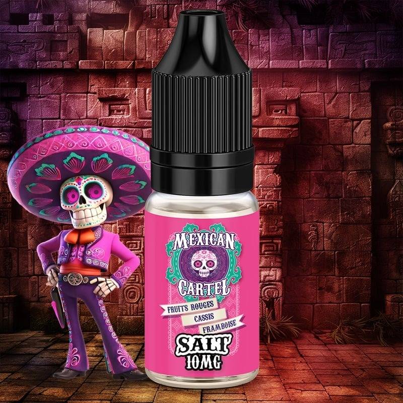 E-liquide FRUITS ROUGES CASSIS FRAMBOISE SALT MEXICAN CARTEL. 10 ml. Saveurs : fruits rouges, framboise, cassis et effet frais. Origine du liquide : France.