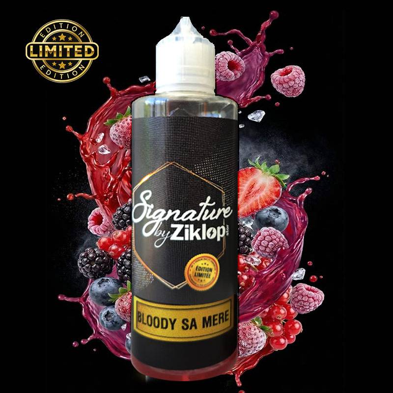 E-liquide BLOODY SA MERE 200ML SIGNATURE Edition Limitée. Saveurs : fruits rouges et effet frais. Origine du liquide : France.